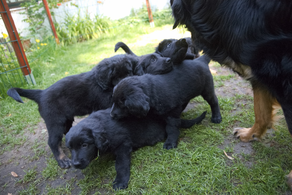 Mehr geht jetzt auch nicht mehr: Samstag ist Cosmo und heute ist Cody davongesegelt, d.h. es liegen nur noch 5 C-Wurf-Welpen im Heimathafen vor Anker. Aber auch 5 können wie 9 Chaos und Quatsch anrichten.