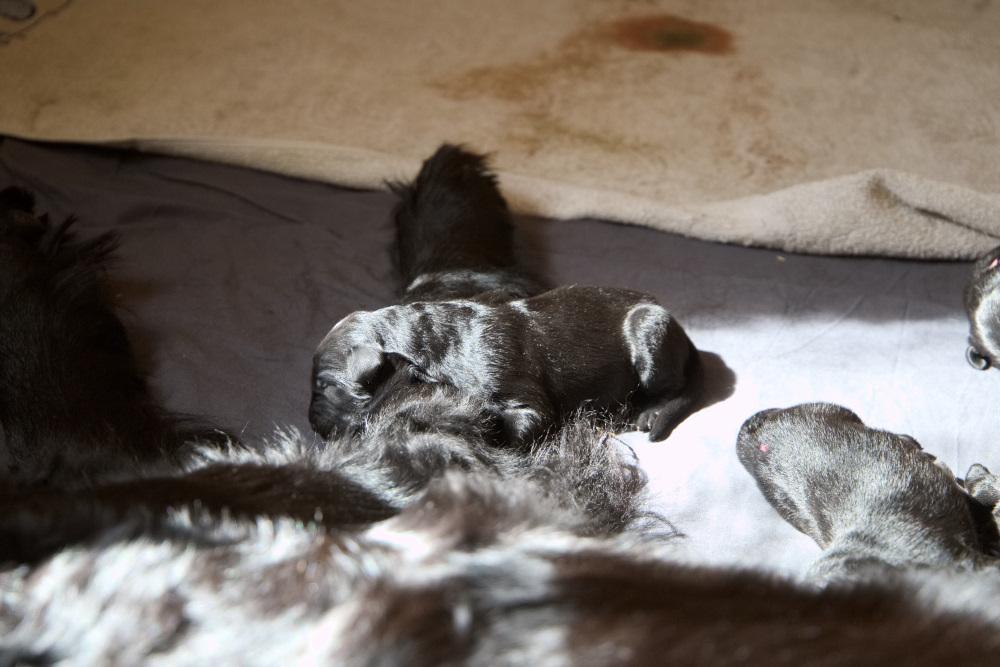 Es ist Ruhe eingekehrt. Feebee erholt sich zunehmend, und wir können anfangen, den Wurf zu genießen. Ein kleiner Film bringt hier einen Einblick.