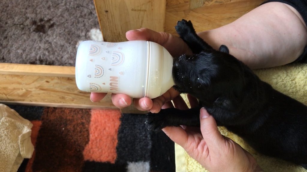 Feebee erholt sich weiterhin von der anstrengenden Geburt. Um ihr ein wenig unter die Pfoten zu greifen, leisten wir jetzt exklusiven Roomservice für das Mamaschiff und die C-Wurf-Crew.