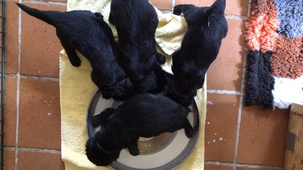 Die Kleinen sind groß genug für ihre ersten Halsbänder. Das hilft uns ungemein, die schwarze Bande auseinanderzuhalten. Ansonsten haben wir Wachstum ohne Irrtum!